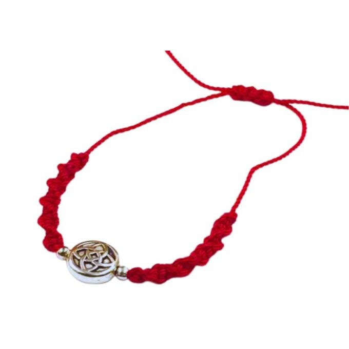 Pulsera Hilo Roja Trenzado Celta Plateado (Ajustable)
