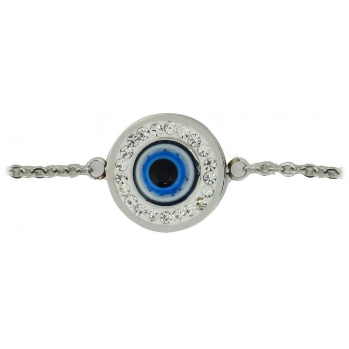 Pulsera Ojo Turco Plateado Brillante (Acero)