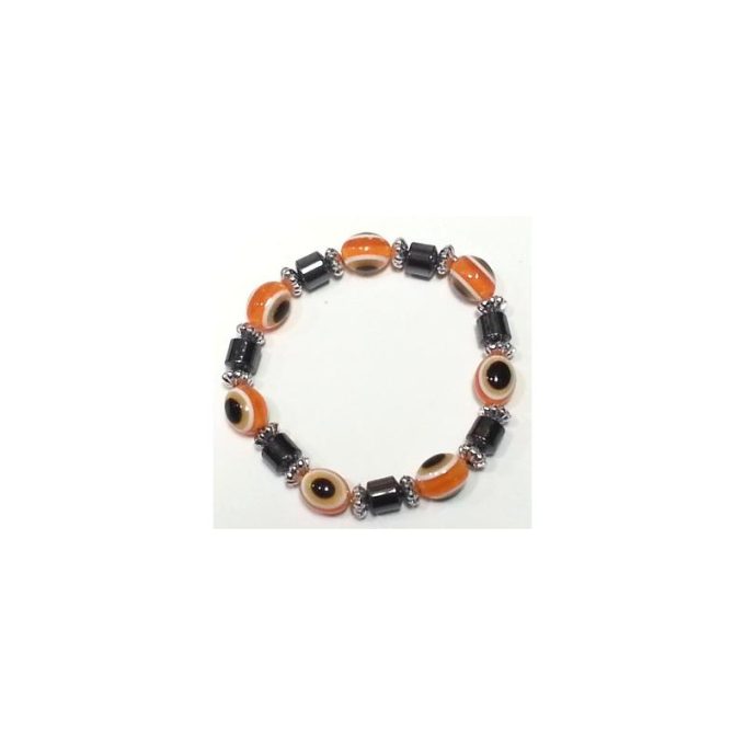 Pulsera Simil Cristal Ojo Turco Naranja (Contra Mal de Ojo) (Elastica) (HAS)