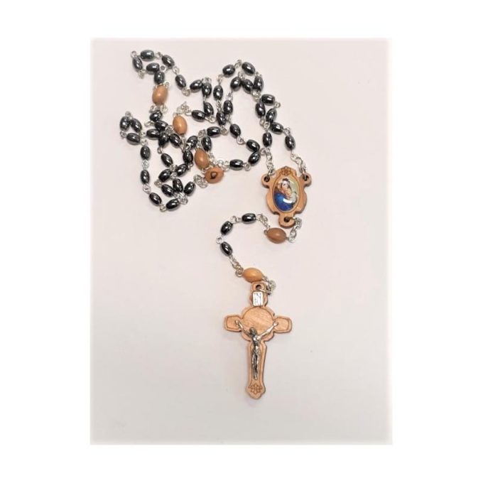 Rosario Madera y Cristal Hematite 6 mm (Cilindrico)(Imagen Religiosas)