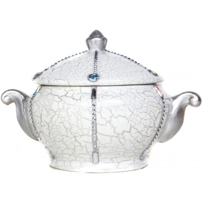 Sopera Ceramica Bombonera Decorada 30 x 21 cm Blanca (Obatala)