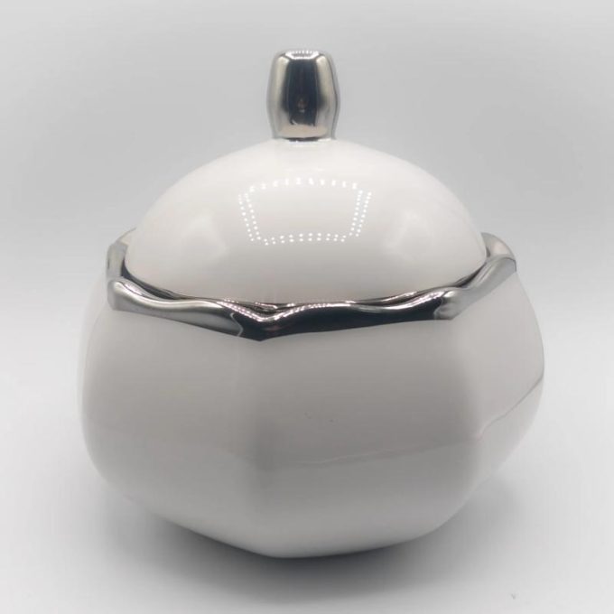 Sopera premium de porcelana china, con elementos plateados con alta calidad de acabado.