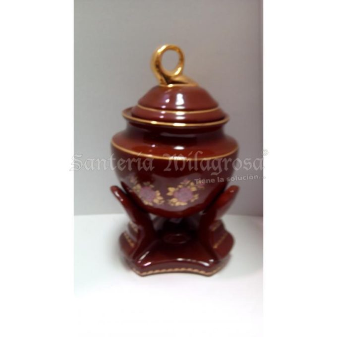 SOPERA Ceramica Redonda Asa Arriba c/ Flores y Pintura Oro 28 x 22 cm aprox. (Marron)