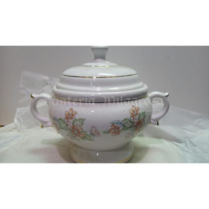 Sé el primero en valorar “SOPERA Ceramica Redonda Asas c/ Flores y Pintura Oro 25 x 35 cm aprox. (Blanca)”