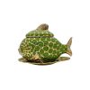 Sopera Porcelana Forma Pez con Plato 25 x 39 cm (Verde con dorado)