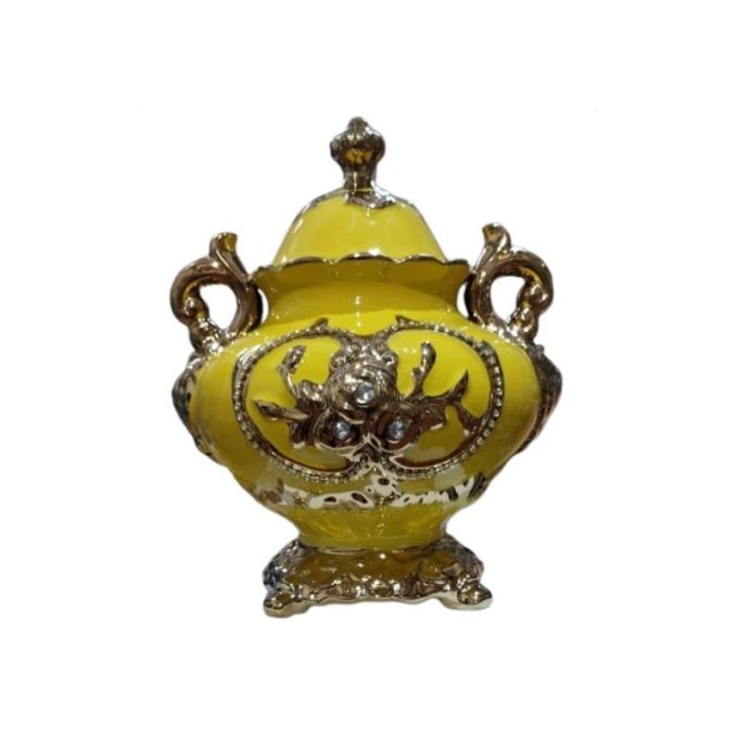 Sé el primero en valorar “Sopera Porcelana Ochun 32 x 30 cm (Amarilla detalles dorados y cristal)”