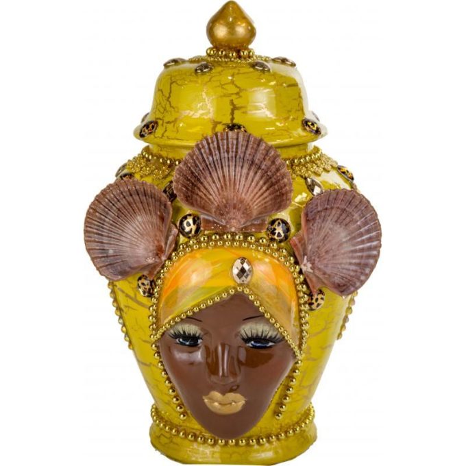 Tibor Ceramica Decorado con Mascara 34 x 20 cm Amarillo (Ochun)