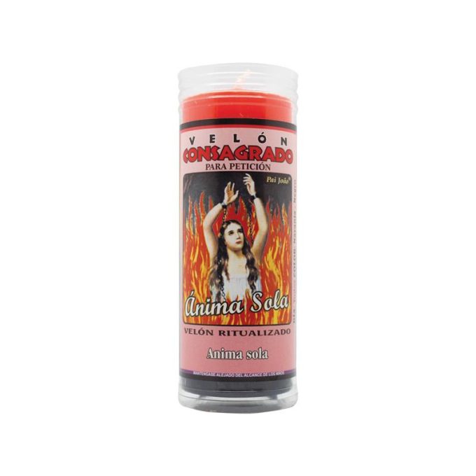 Velón consagrado al Ánima Sola para producir desespero en personas y para la separación de parejas.