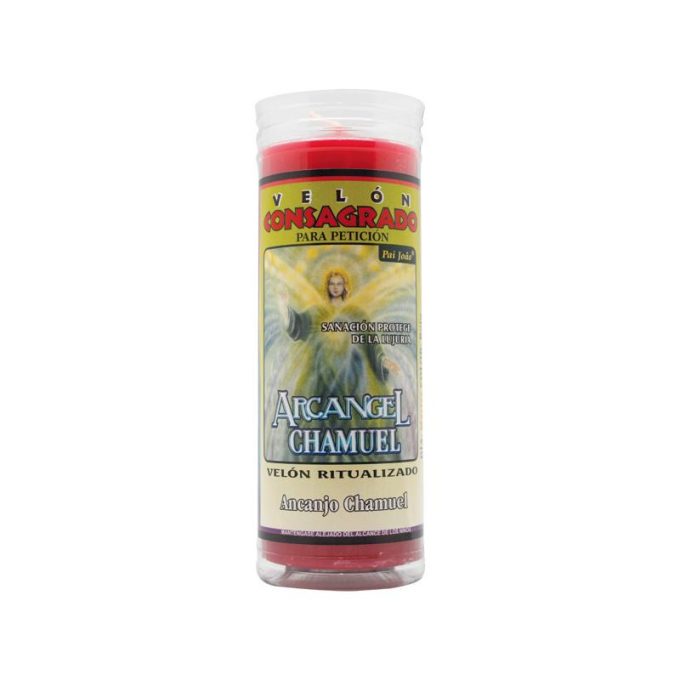 Velon Consagrado Arcangel Chamuel 15 x 5,5 cm (Incluye Ritual)(rojo)