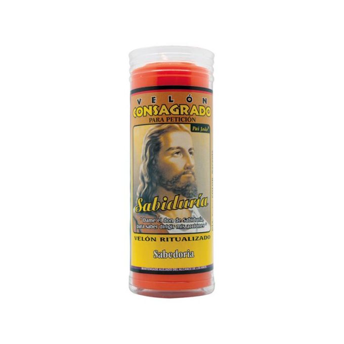 El velón consagrado Sabiduría, se usa espiritualmente para obtener un grado más alto de conocimientos, desarrollar una conducta prudente en la vida, los estudios o negocios, también para el despertar de la conciencia y pensamiento